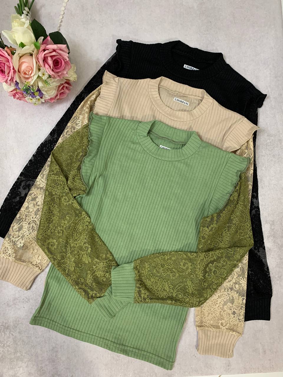 بلوز یقه اسکی فینگر دار فانریپ کرکره کد -1033