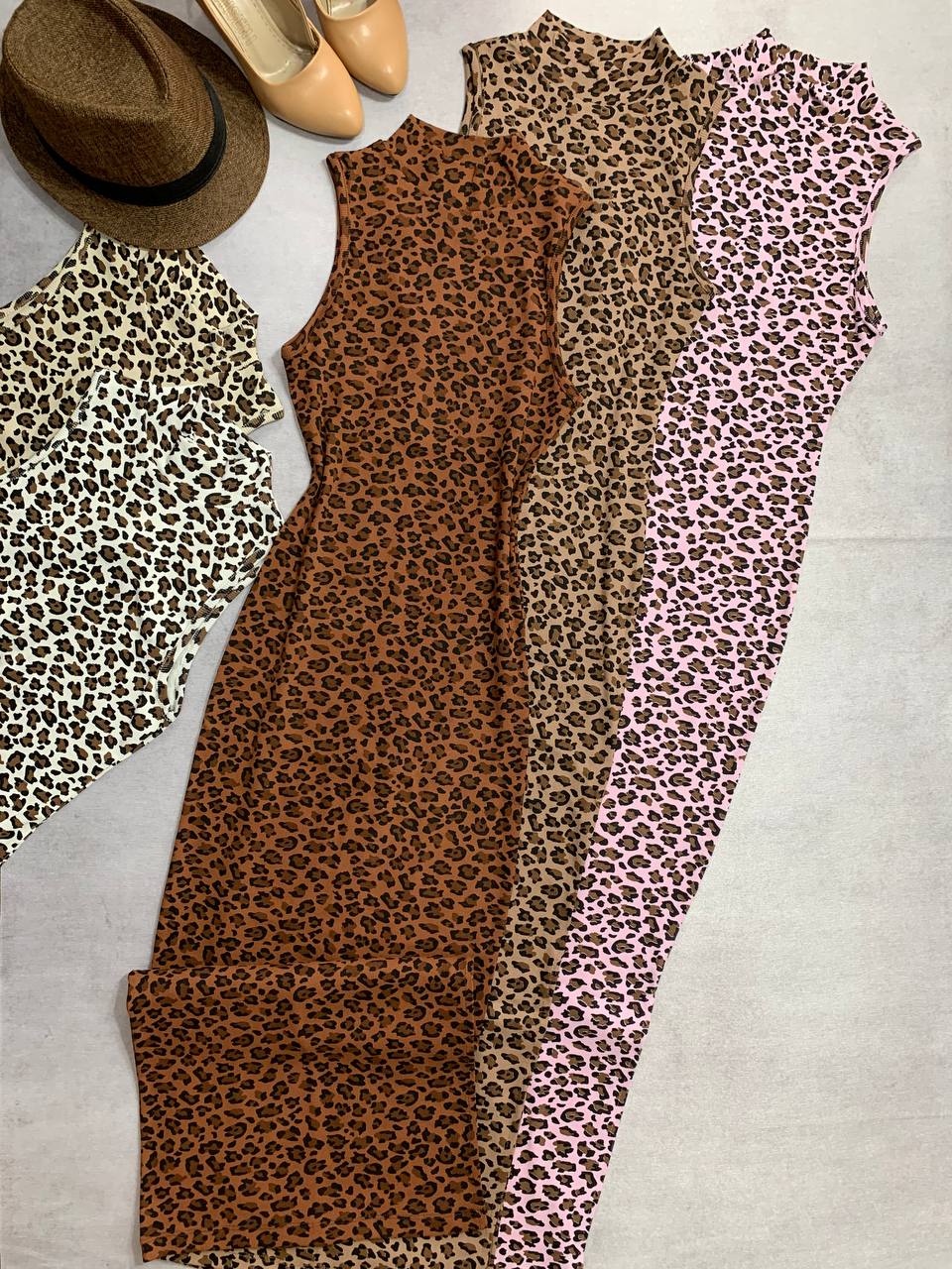پیراهن ماکسی یقه ایستاده آستین بلند پلنگی_کد1047