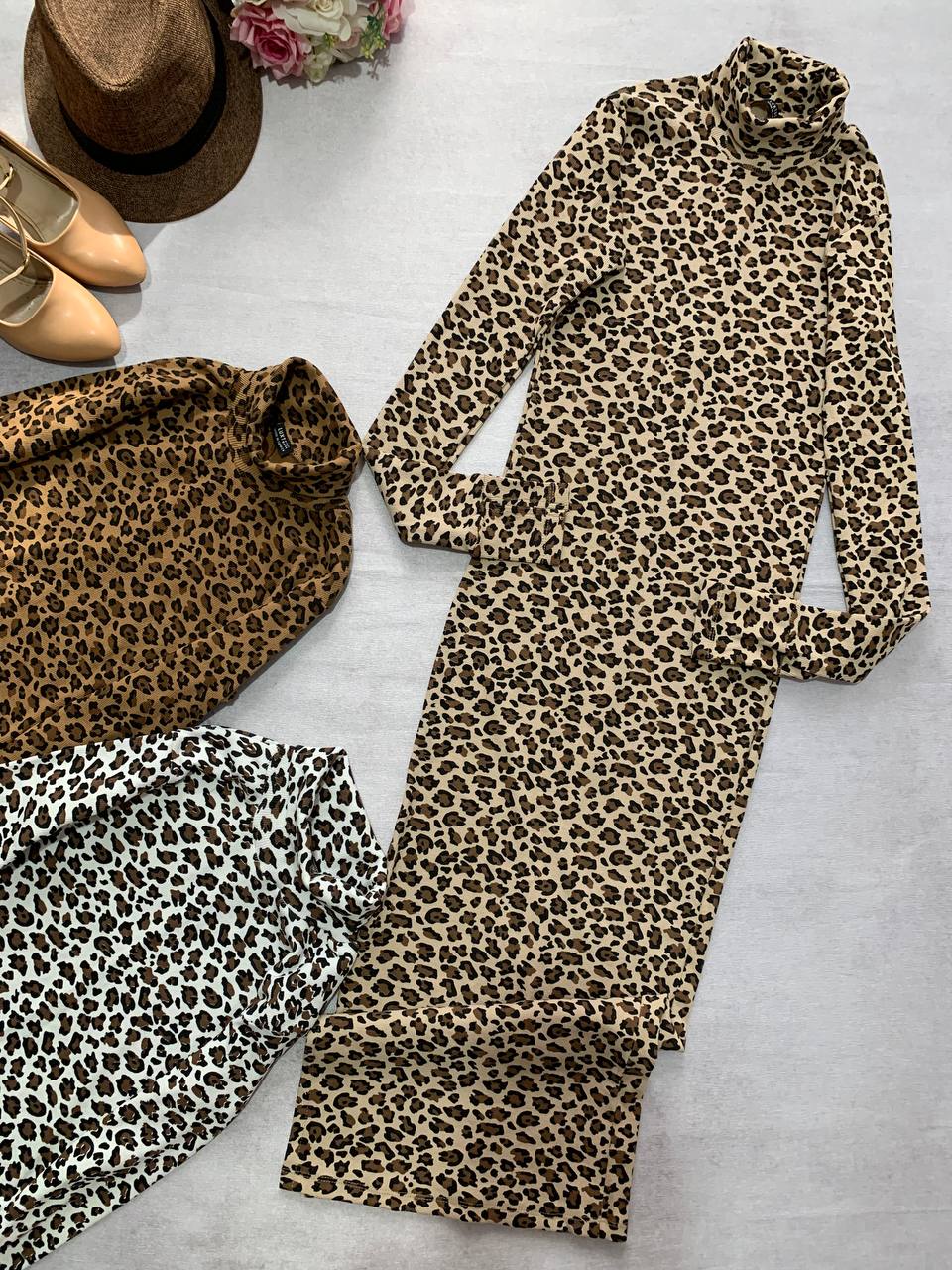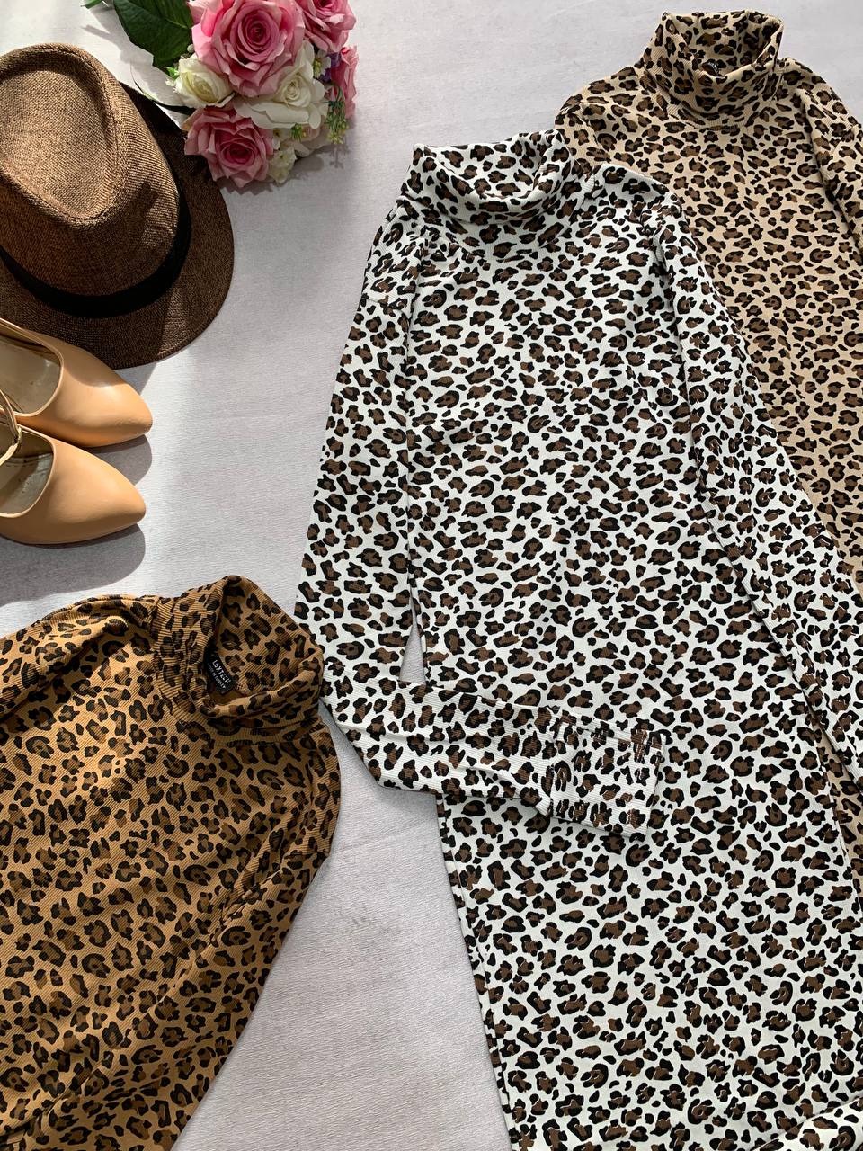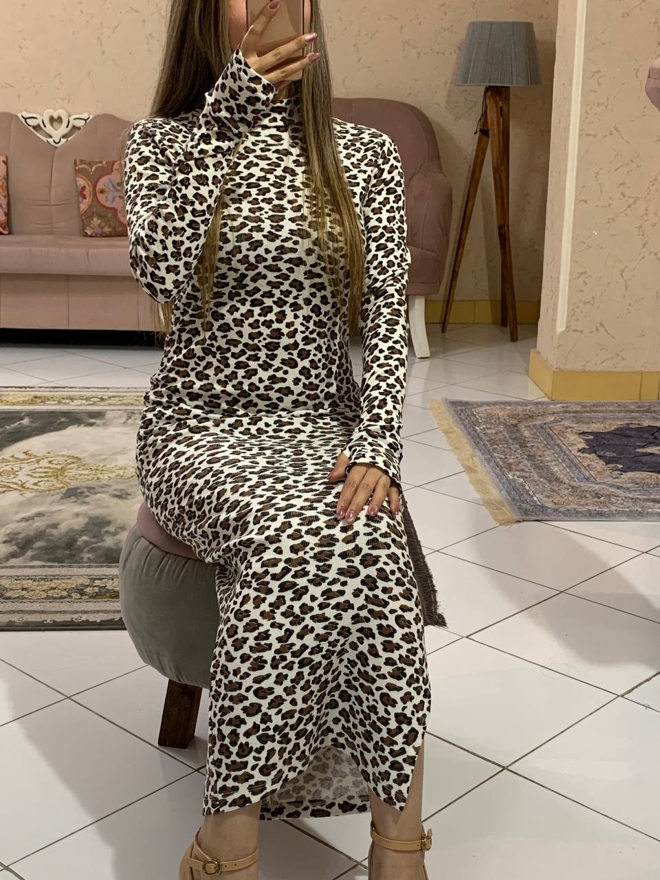 پیراهن ماکسی یقه اسکی آستین فینگری پلنگی_کد1063